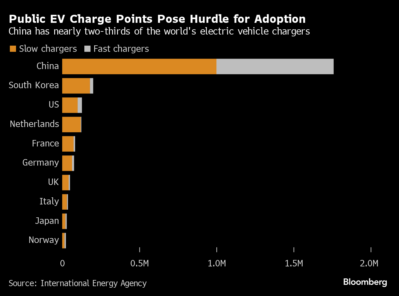 While the cost of electric vehicles is coming down, there's still a hurdle to greater adoption: charging networks. Globally, networks can barely keep pace with the uptake of EVs, posing a profound problem, writes Bloomberg Opinion's David Fickling. Poor availability of charging is one of the main reasons potential EV buyers cite in holding them back from a purchase, which in turn has encouraged a widening group of automakers to slow down their targets for going electric. This could become a vicious circle, as a smaller-than-expected fleet of battery cars shrinks the future revenue pool for charging companies, causing a pullback in investment and exacerbating consumer concern about finding a plug socket. The two-day BloombergNEF Summit San Francisco begins Tuesday and will focus on all-things EV, as well as other advanced transportation technologies and the energy transition.