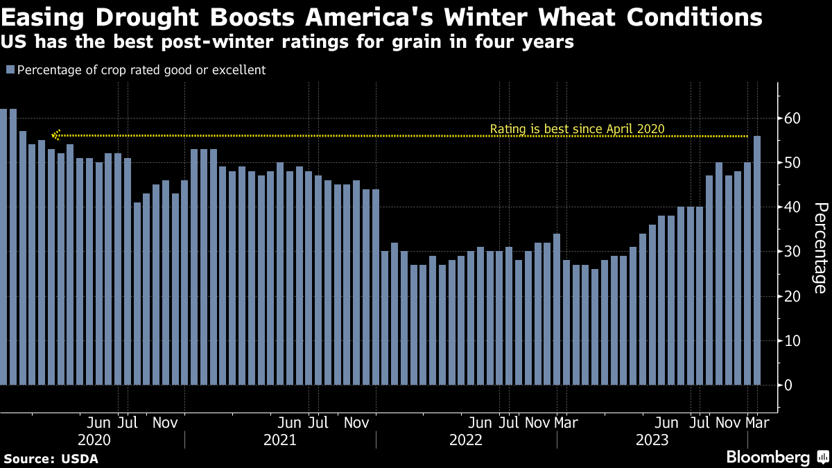 A resurgence in the US wheat crop is coming just as health-conscious consumers are buying less food made with the staple grain. Easing drought in America's breadbasket has wheat crop-conditions at the best level in four years. Meanwhile, millers have been churning out less flour. Taken together, that means less domestic demand for wheat when American farmers were already losing ground in export markets to cheaper supplies by top shipper Russia. The USDA will release its World Agriculture and Demand Estimates Thursday, shedding light on demand for harvested wheat and other crops.