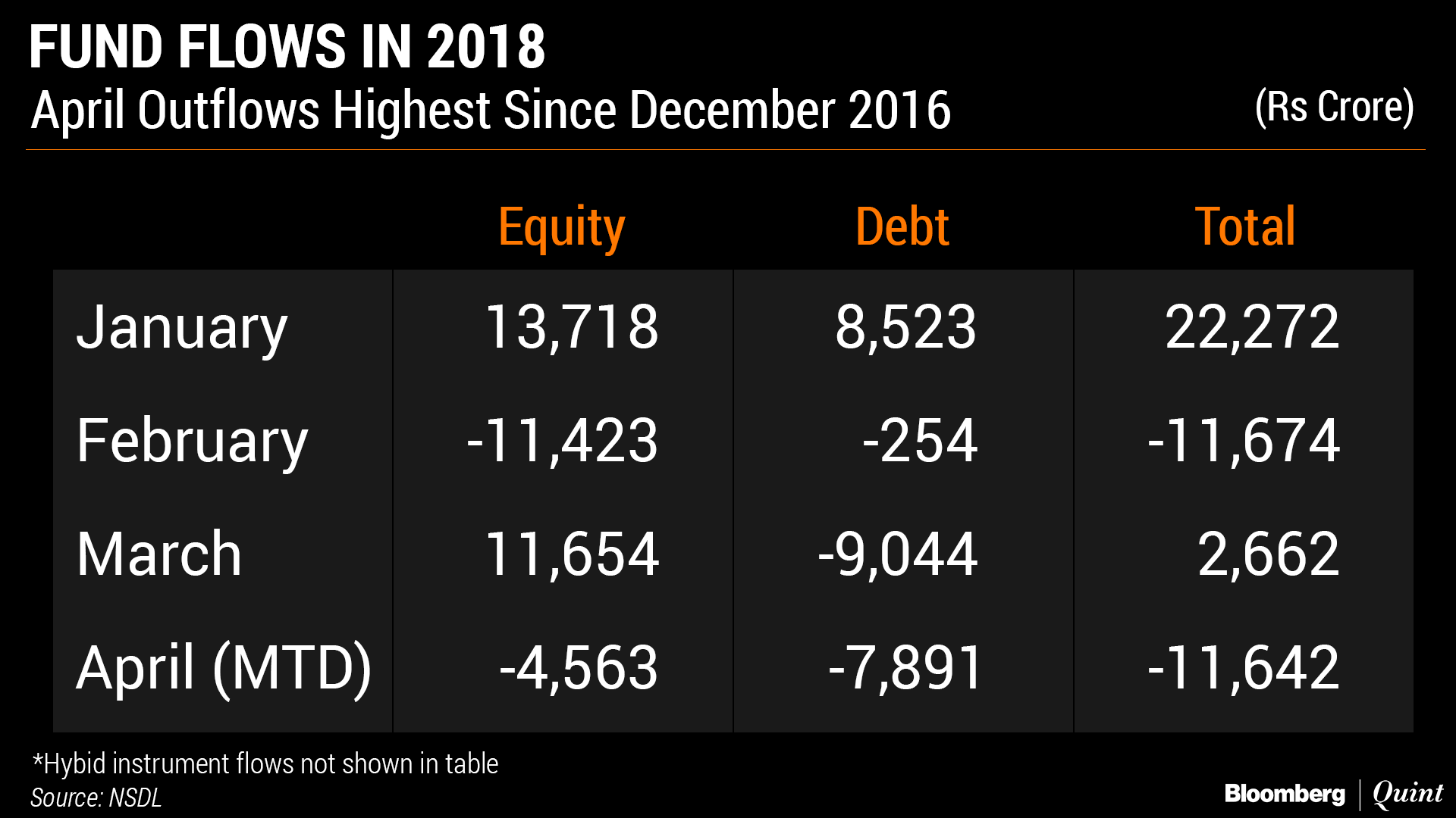 Data from the National Securities Depository Ltd shows that foreigners have sold more than Rs 11,000 crore in debt and equity as of April 23. This is most since December 2016. Sales have been heavier in the debt markets where foreigners have sold Rs 7891 crore, shows the data. Foreign investors have been net sellers in Indian debt for two consecutive months.