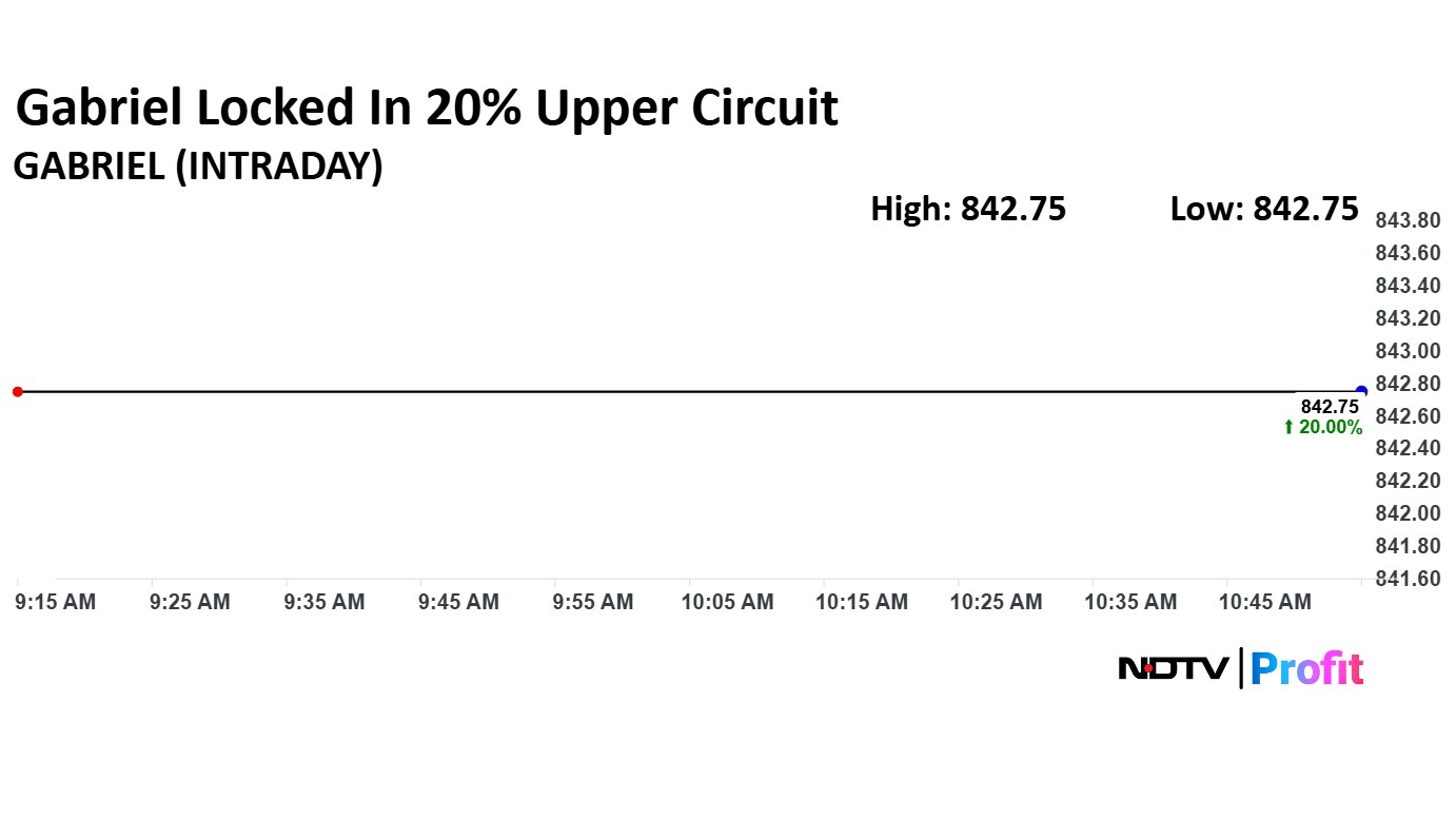 Gabriel India share price rallied for six sessions. The stock price hit the 20% upper circuit and rose to Rs 842.75 apiece. The share price remained locked in upper circuit as of 11:28 a.m., as compared to a 0.03% advance in the NSE Nifty 50.
