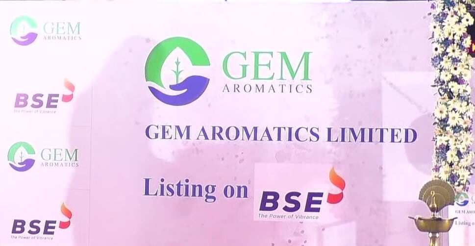 Gem Aromatics Ltd. made a laskluster debut on the stock market on Tuesday, with shares listing at a premium of just 2.5% over its IPO price. The share price opened at Rs 333.1 apiece on the NSE and Rs 325 on the BSE. The IPO issue price was Rs 325.