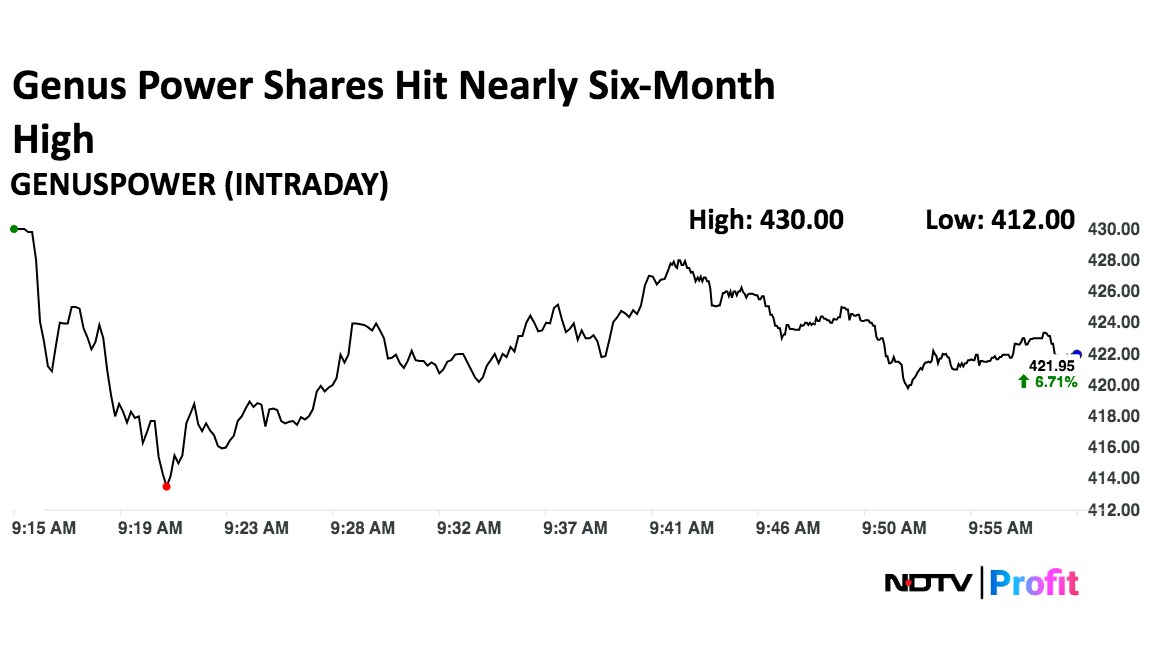 Shares of Genus Power Infrastructure Ltd. hit a nearly six-month high as the company's fourth quarter profit more than doubled.