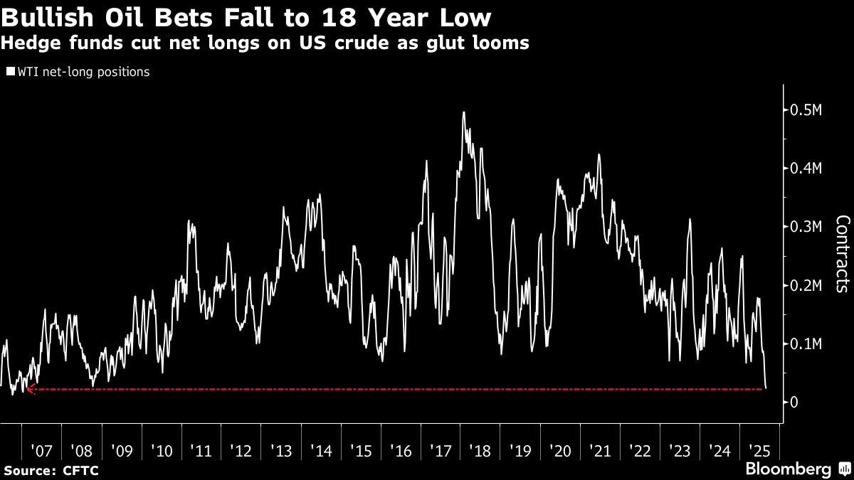 In the US, hedge funds winnowed their bullish position on US crude to the lowest in about 18 years as uncertainty over economic policy compounded growing concerns about oversupply. In contrast, outright wagers on higher Brent prices rose by the most since early July last week, after the difference in value between the two benchmarks widened recently.
