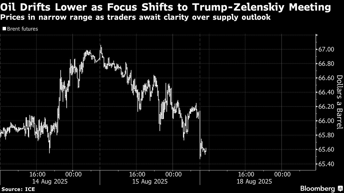 Oil slipped as traders turned their attention to Donald Trump's meeting with Volodymyr Zelenskiy on Monday, with the Ukrainian leader facing US pressure to reach a peace deal with Russia that involves ceding territory.