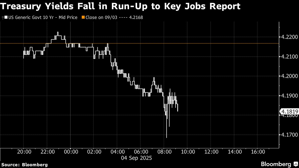 Wall Street traders gearing up for Friday's jobs report got a trio of data that only reinforced the view of a cooling labor market, keeping bets on Federal Reserve rate cuts alive and driving bond yields down.
