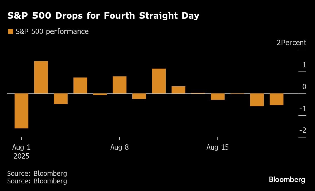 All megacaps retreated, with Nvidia Corp. extending a two-day plunge to 5%. The Nasdaq 100 slid 1%. The S&P 500 fell for a fourth straight session. After almost doubling this year, Palantir Technologies Inc. tumbled 20% in six days.