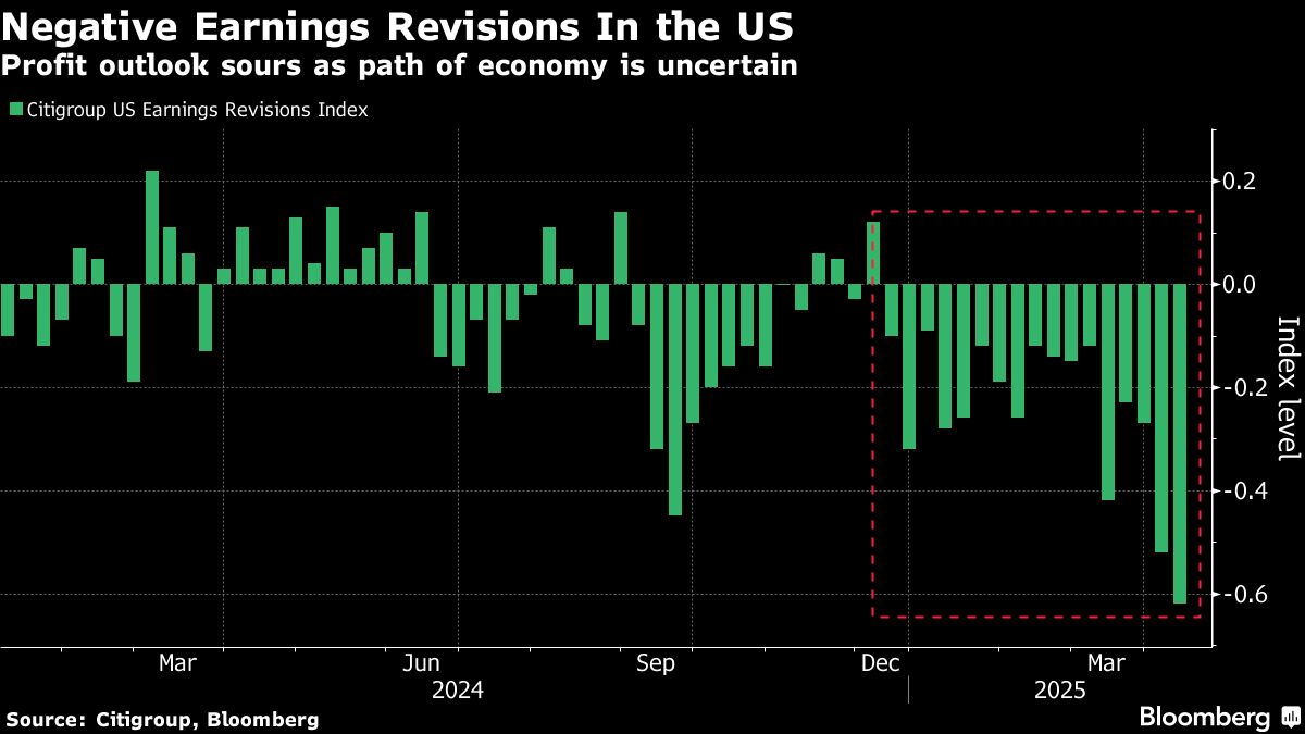Yet several analysts are souring on the profit outlook due to the risk of an economic slowdown, with the US benchmark's earnings revisions breadth — or estimated upgrades versus downgrades — approaching downside extremes.