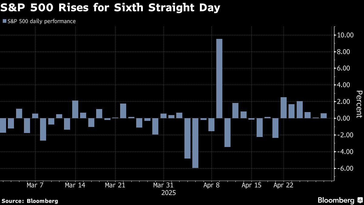 Investors looked past weak consumer confidence and labor data to send the S&P 500 up 0.6%. The gauge notched its best six-day run since March 2022, rising about 8% in the span. The Nasdaq 100 is close to erasing all of its losses since April 2, when President Donald Trump announced his trade offensive. Treasuries extended their April gains, with 10-year yields dropping below 4.2%. The dollar rose against most major currencies.