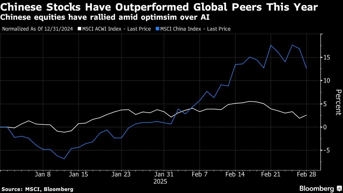 In Asia this week, traders' hopes are running high that a ramp-up in fiscal spending will be announced at China's National People's Congress to bolster domestic demand, offsetting the risk of US tariffs and sustain this year's blistering rally. The Chinese yuan has strengthened about 0.6% this year while a gauge of the nation's equities has jumped more than 12%, almost five times the gain of an index of global stocks, according to data compiled by Bloomberg.