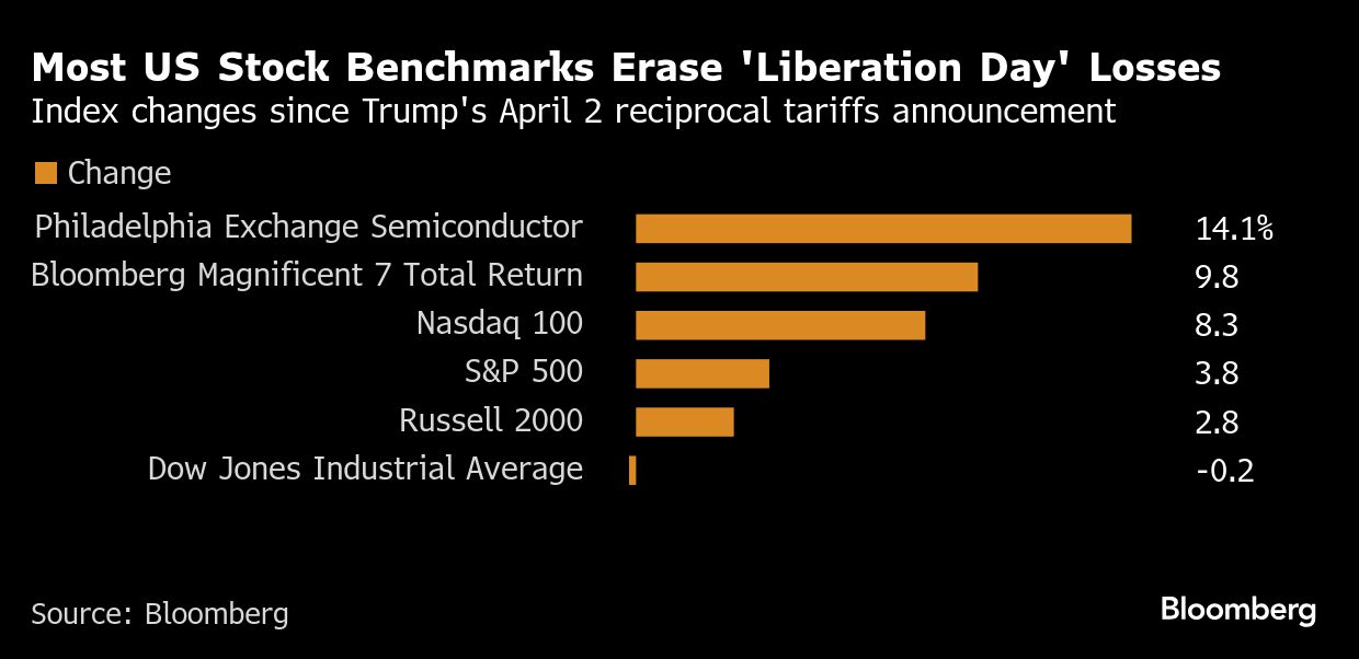 A rally in the world's largest technology companies wiped out the stock market's losses for the year on bets tensions around Donald Trump's trade war are cooling, with inflation data showing limited impacts thus far.