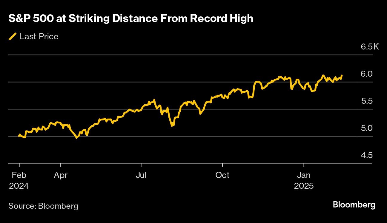 The S&P 500 topped 6,100. The Nasdaq 100 added 1.4%. The Dow Jones Industrial Average gained 0.8%. The Bloomberg Magnificent Seven Total Return Index climbed 1.8%. The Russell 2000 gained 1.2%. In late hours, Applied Materials Inc. gave a lukewarm revenue forecast. Airbnb Inc. issued an upbeat outlook.