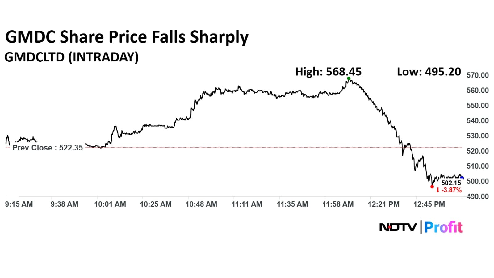 GMDC share price erased morning gains to extend decline for third consecutive trading session. The stock has fallen over 14% from its intraday high on Thursday.