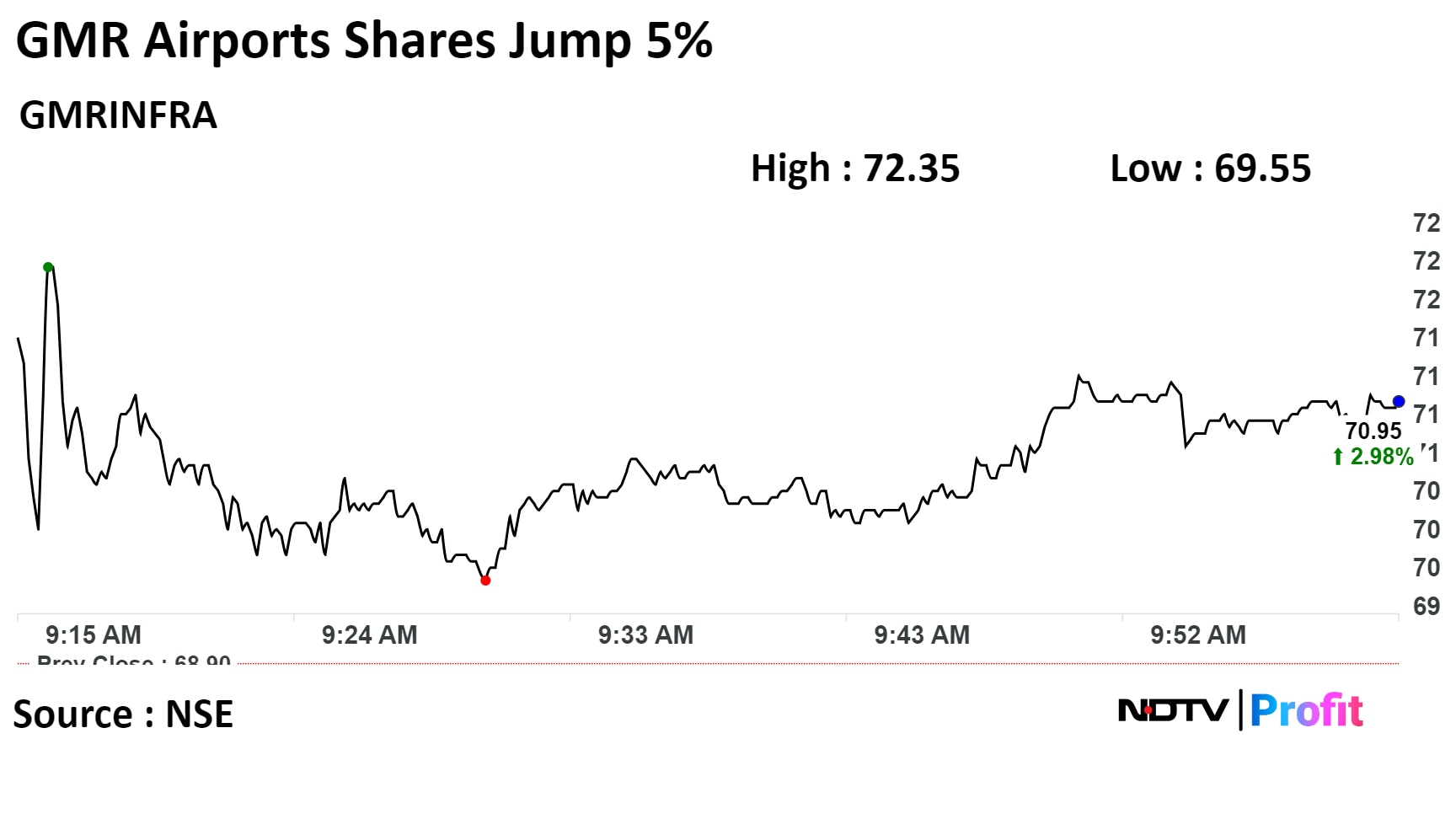 Shares of GMR Airports rose as much as 5%, before paring gains to trade 2.7% higher at 10:05 a.m. compared to a 0.11% advance in the NSE Nifty 50.