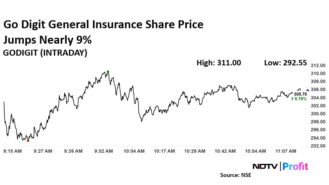 Shares of Go Digit General Insurance Ltd. rose over 8% on Thursday, after its net profit nearly tripled to Rs 118 crore in the quarter ended December.