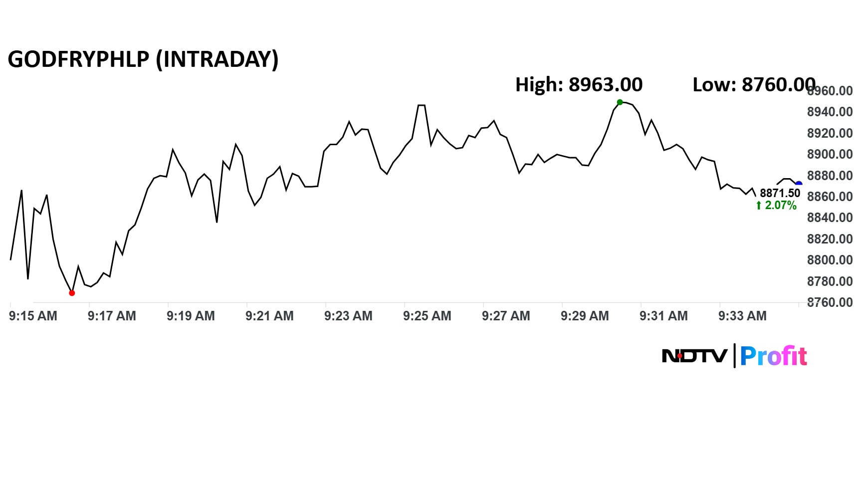 Shares of Godfrey Phillips India rose as much as 3.1% to Rs 8,963 apiece on Tuesday. The benchmark Nifty 50 was flat.