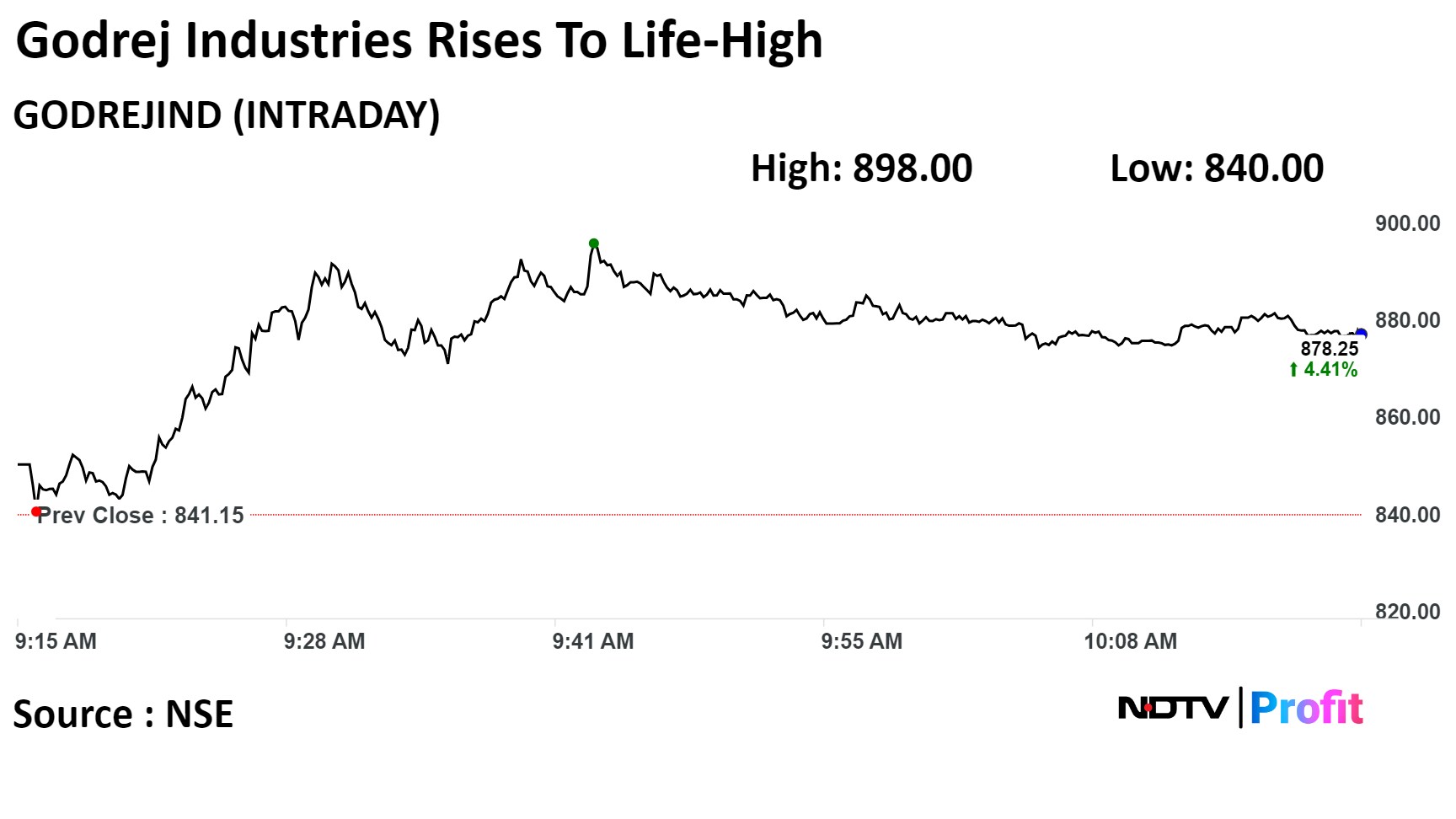 Shares of Godrej Industries rose 6.76%, the highest since May 14, 1990 when it was listed on BSE. It pared gains to trade 4.43% higher at 10:25 a.m., compared to a 0.09% decline in the NSE Nifty 50.