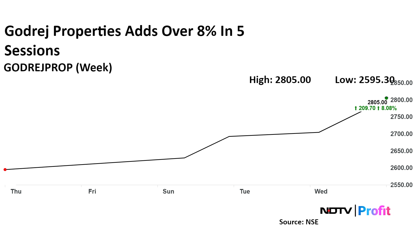 Continuing its gains for a fifth consecutive session, the stock rose as much as 4.7% on Friday to hit Rs 2,832.70, its highest level since Nov. 8. It pared gains to trade 3.7% higher at Rs 2,806 apiece, as of 12:10 p.m., compared to a 1.24% advance in the NSE Nifty 50.