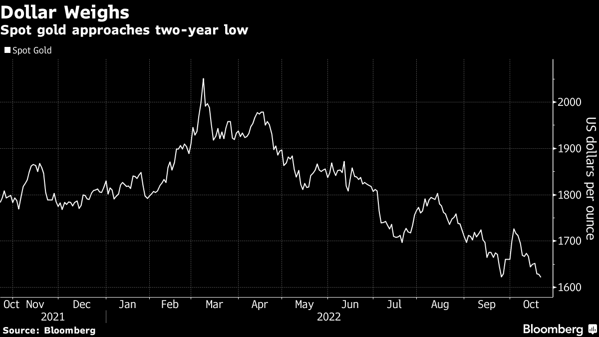 The Fed's relentless monetary tightening to fight inflation this year has sent bullion down about 20% from its March peak, with investor holdings of gold-backed exchange-traded funds -- a key pillar in driving prices to record-highs in 2020 -- set to record a net outflow this year.