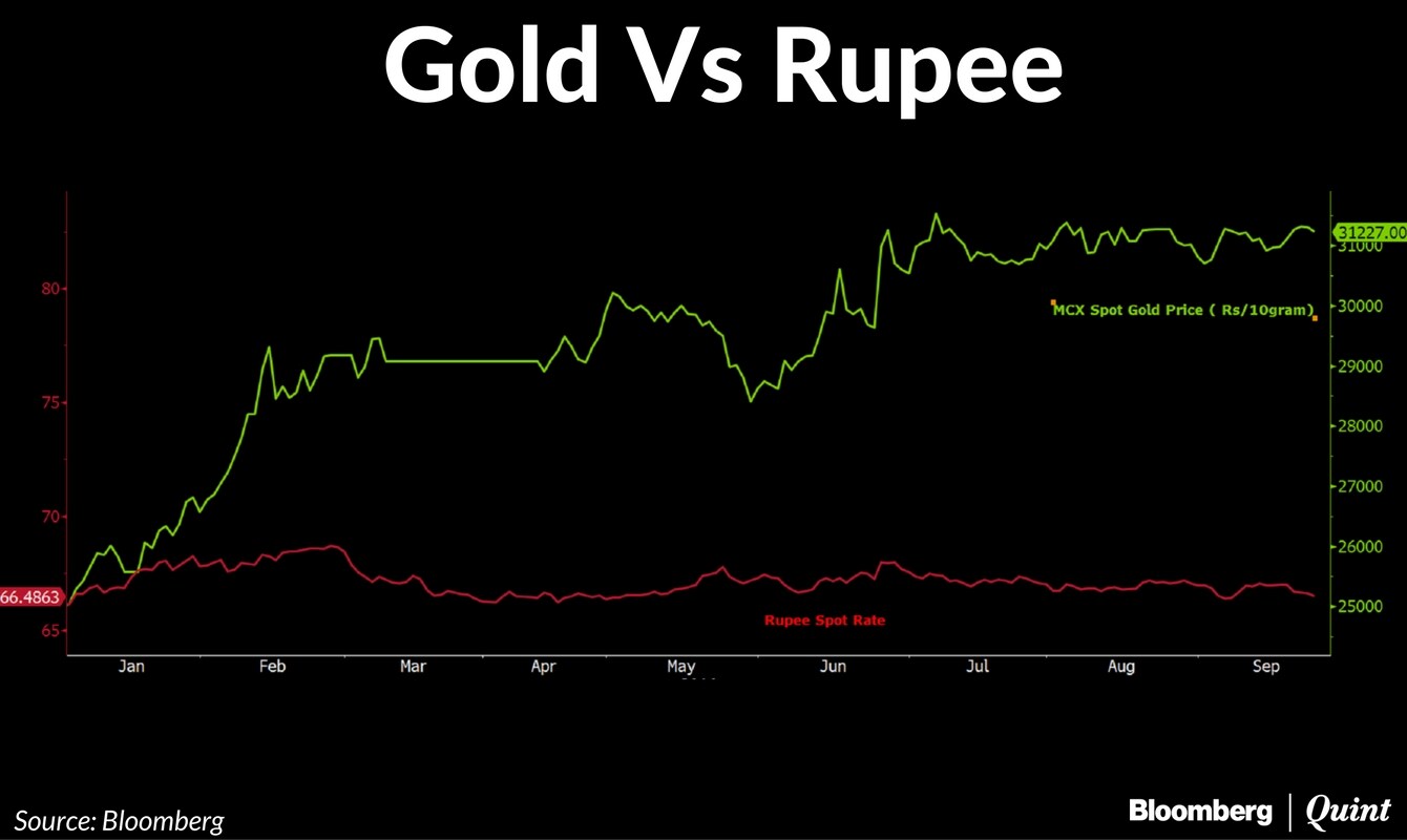 Gold prices in India have moved in tandem with international prices, with domestic gold rising 24.94 percent to Rs 31,227 per 10 grams in Mumbai in 2016. Meanwhile, the rupee has depreciated 0.47 percent or 31 paise since the beginning of the year to 66.46 a dollar.