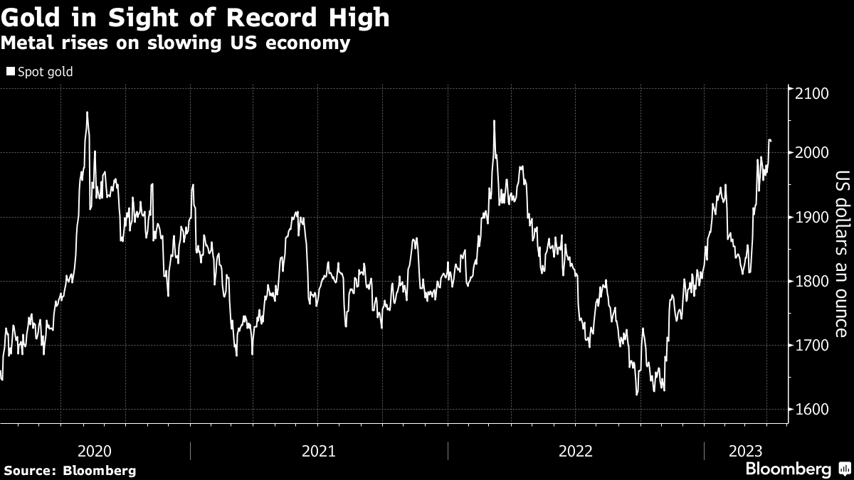 Bullion is in sight of a record high after surging in March due to turmoil in the banking sector. Investors will be closely watching for more signs the Fed may be taking the heat out of the economy and putting the brakes on inflation when crucial monthly figures on nonfarm payrolls and unemployment are released on Friday.