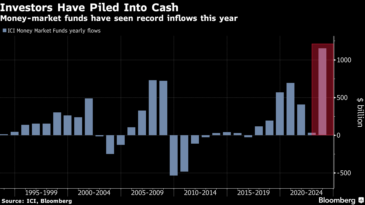 But even with the rally, Kostin noted that $1.4 trillion was poured into money-market funds this year as interest rates climbed, far higher than the $95 billion that flowed into US equities. “As rates begin to fall, investors may rotate some of their cash holdings toward stocks,” he said.