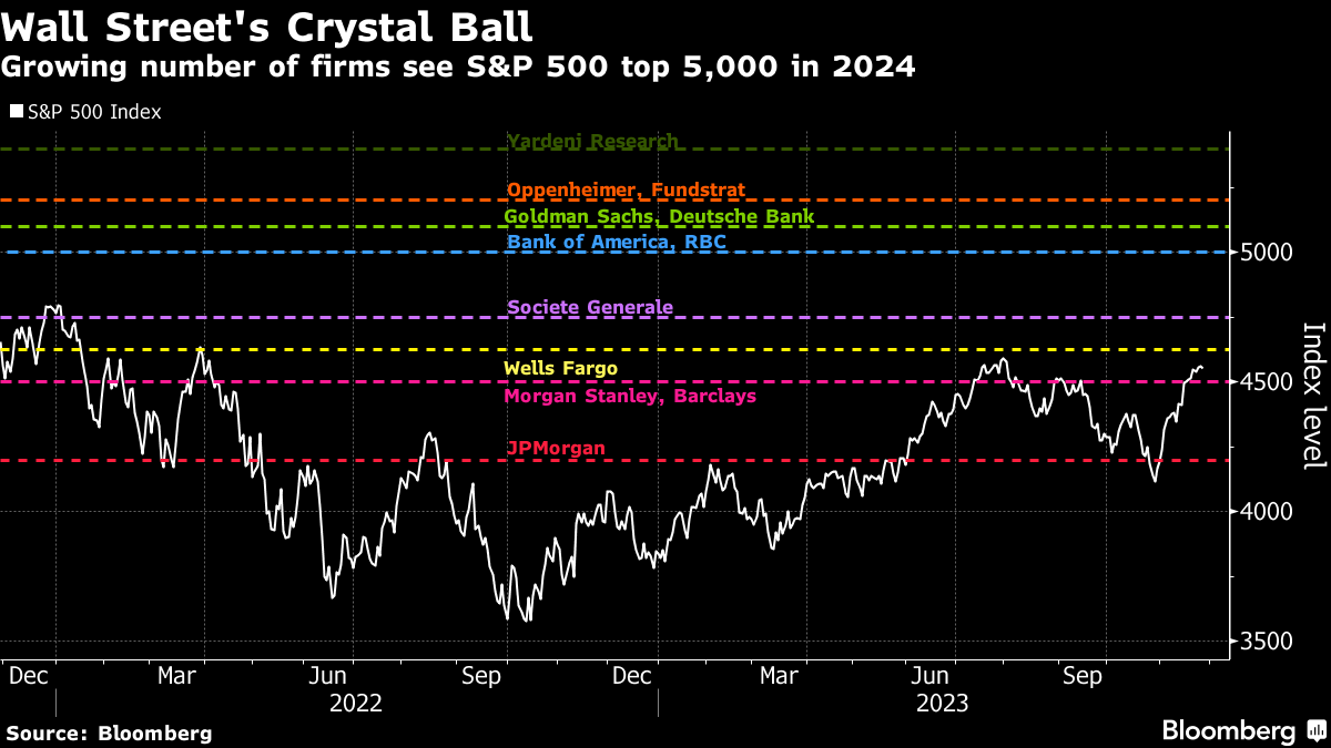 Kostin sees the S&P 500 at 5,100 points by the end of next year, joining Wall Street peers like those at Bank of America Corp. and Oppenheimer Asset Management in expecting a fresh high in 2024. The Goldman strategist raised his forecast by almost 9% from the 4,700 level he predicted in mid-November.