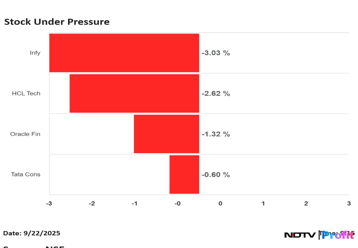 Stocks of Infosys Ltd., Tata Consultancy Services Ltd., HCL Technologies Ltd., Oracle Financial Services Software Ltd. all fell at the start of the trading session.