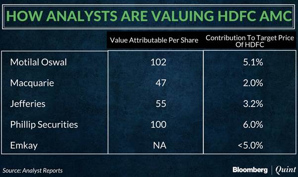 The company's IPO will only make difference to HDFC's stock price if the issue price implies valuations higher than 5-6 percent of its AUM. But even at such an issue price, HDFC AMC's contribution to HDFC Ltd.'s sum of parts-based valuation comes to just 2-6 percent. Analysts have valued HDFC AMC's shares between Rs 50-100 each. As a result, the IPO will have very little bearing on the overall valuation of HDFC.