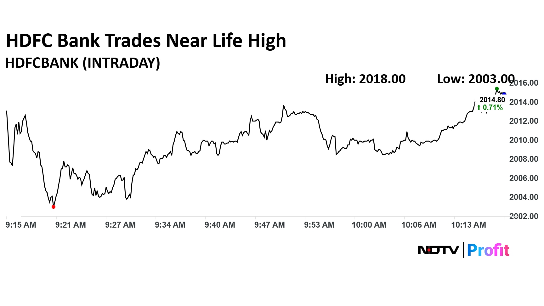 HDFC Bank share price rose as much as 0.87% to Rs 2,018 apiece, which is just Rs 9 away from its life high of Rs 2,027. The share price was trading 0.69% higher at Rs 2,014 apiece as of 10:21 a.m., as compared to 0.10% advance in the NSE Nifty 50 index.