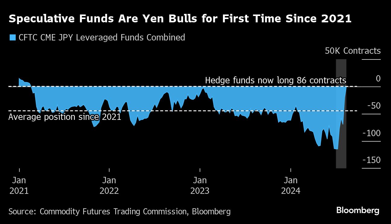 (Bloomberg) -- Hedge funds turned bullish on Japan's currency for the first time since 2021 after sharp swings in foreign-exchange markets led to a blow-up of a popular yen trade.