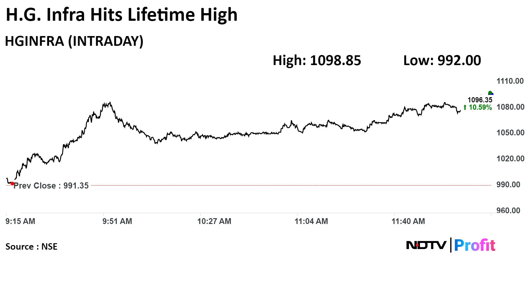 Shares of HG Infra Engineering Ltd. surged nearly 11% to a record high on Tuesday after its consortium with Stockwell Solar Services Pvt. won a contract to build two solar power plants.