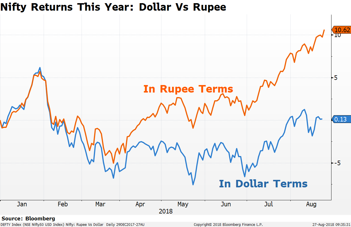 The rupee has depreciated nearly 10 percent this year while Nifty 50, India's equity benchmark, gained 10 percent. That means foreign investors made no returns in dollar terms on their investments. Overseas investors have withdrawn nearly Rs 39,000 crore so far this year, with most the outflows contributed by debt.