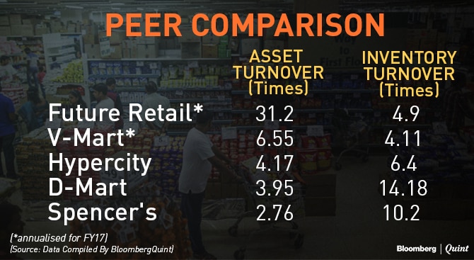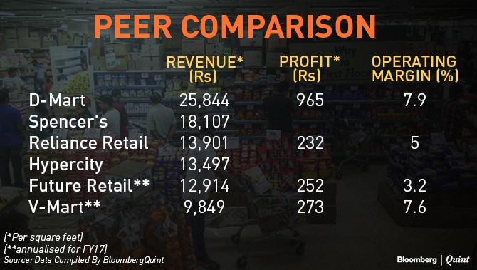 The story was updated after Future Retail requested BloombergQuint to consider its nine-month FY17 numbers citing structural changes in the group in financial year 2015-16. Subsequently, Future Retail and V-Mart's numbers have been calculated by annualising its nine-month numbers ending December 2016.