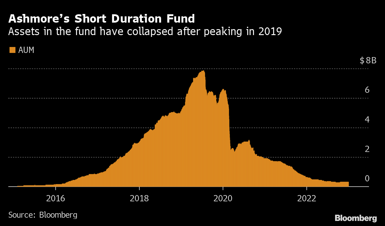Ashmore's once-mighty short-duration fund has gone from $7.8 billion in 2019 to just over $300 million in mid-February. The firm's two largest public money pots have shed more than $8 billion in total since the start of 2020 and now manage $1.8 billion and $1.2 billion respectively.