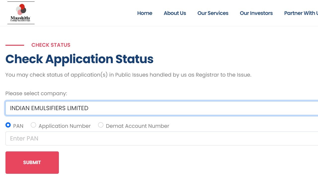 Steps to check Indian Emulsifier IPO allotment status on maashitla.com