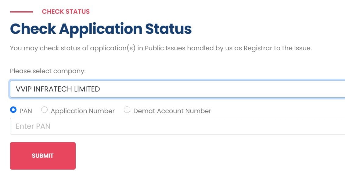 Steps to check VVIP Infratech IPO allotment status on Maashitla Securities