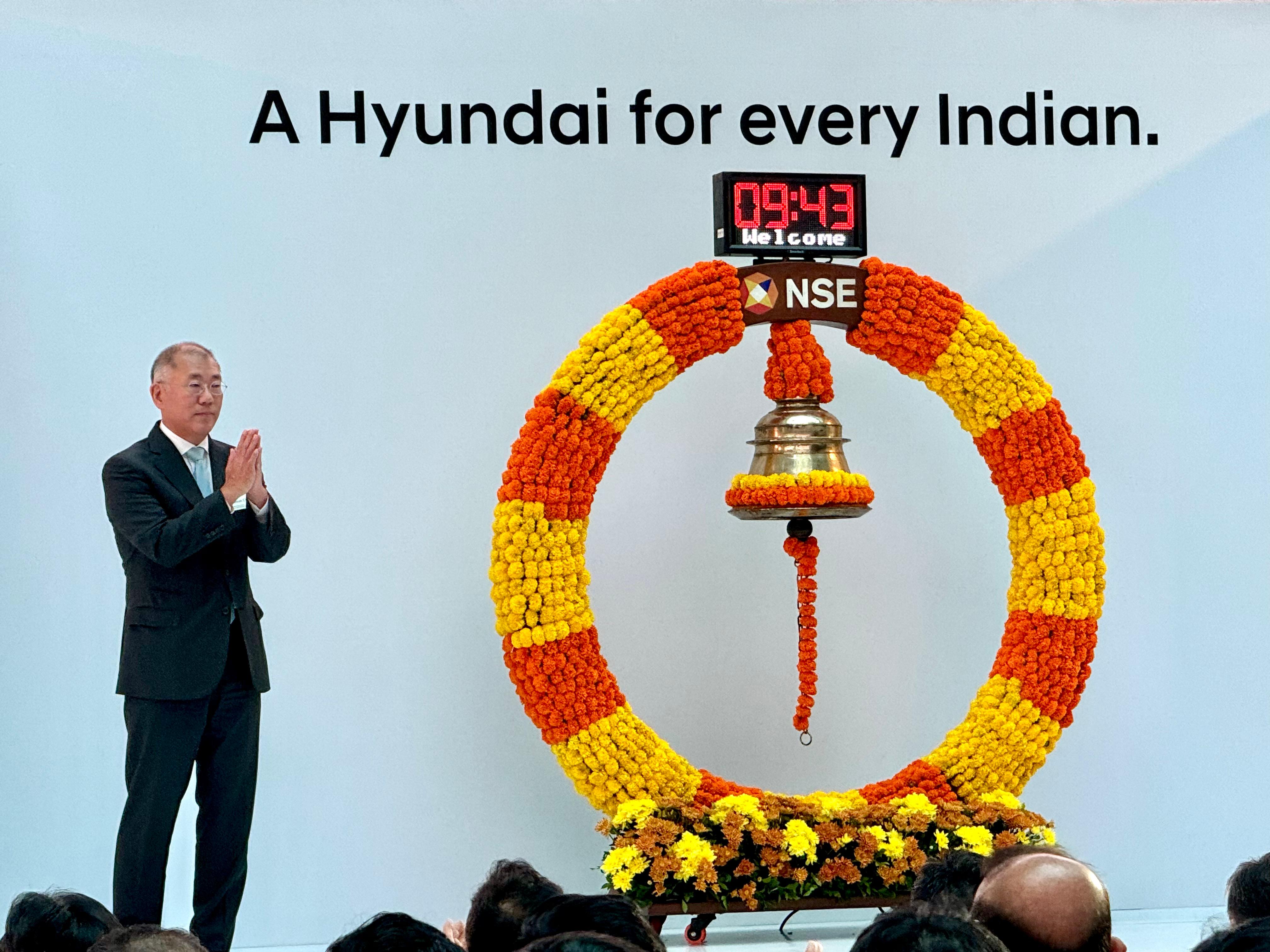 After raising Rs 27,870 crore in its initial public offering—India's biggest so far—shares of the automaker debuted at a discount of 1.5%.