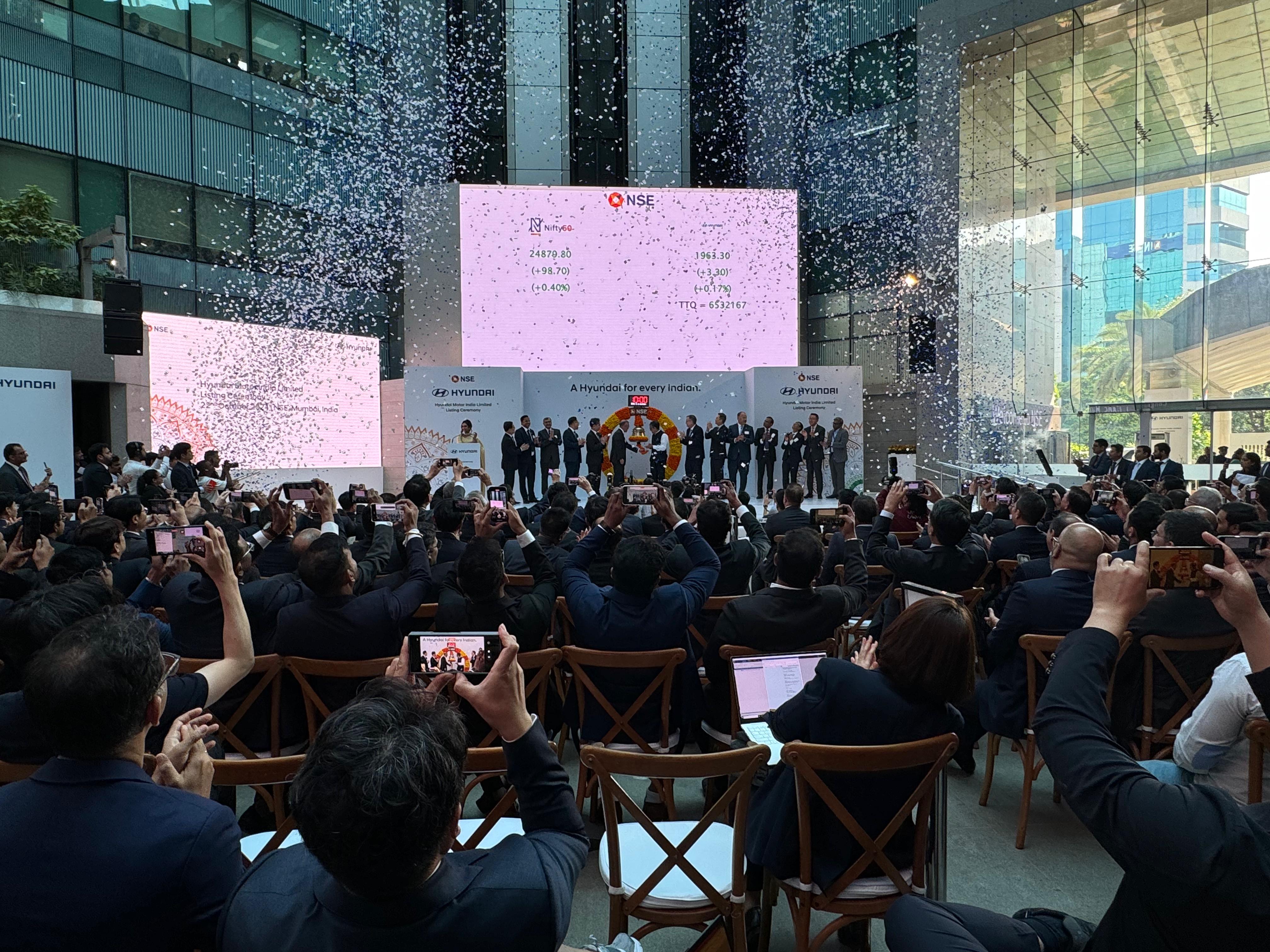 After raising Rs 27,870 crore in its initial public offering—India's biggest so far—shares of the automaker debuted at a discount of 1.5%.