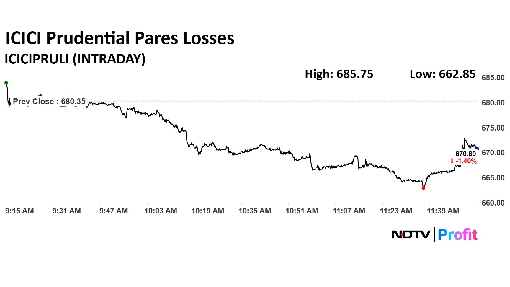 ICICI Prudential Life Insurance share price declined 2.57% to Rs 662.82 apiece. After the business update, the share price pared losses to trade 1.2% lower at Rs 671.4 apiece as of 12:15 p.m., as compared to a 0.43% decline in the NSE Nifty 50.