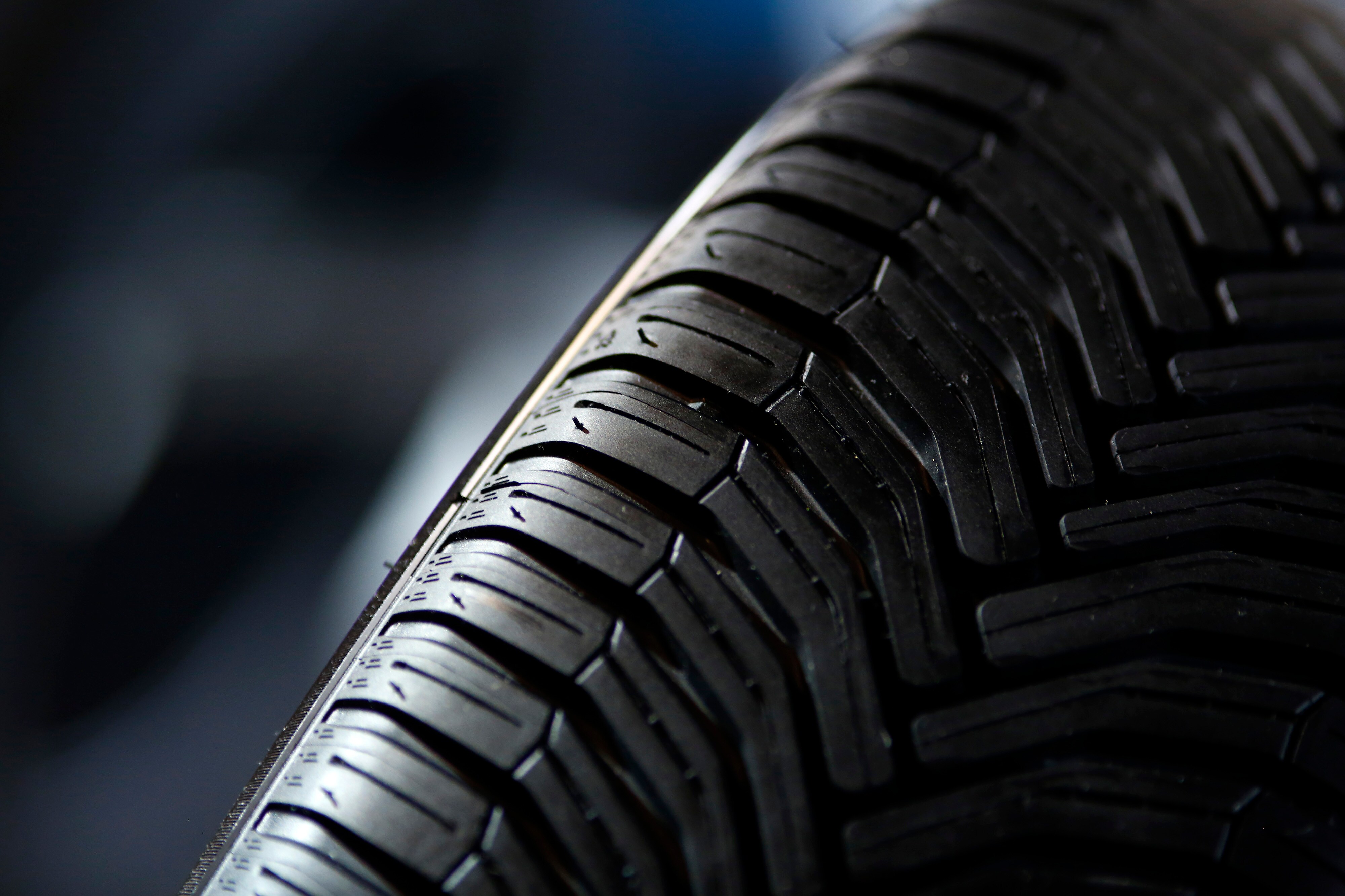 The tread of a newly manufactured tyre is visible at an auto show. (Photographer: Gianluca Colla/Bloomberg)