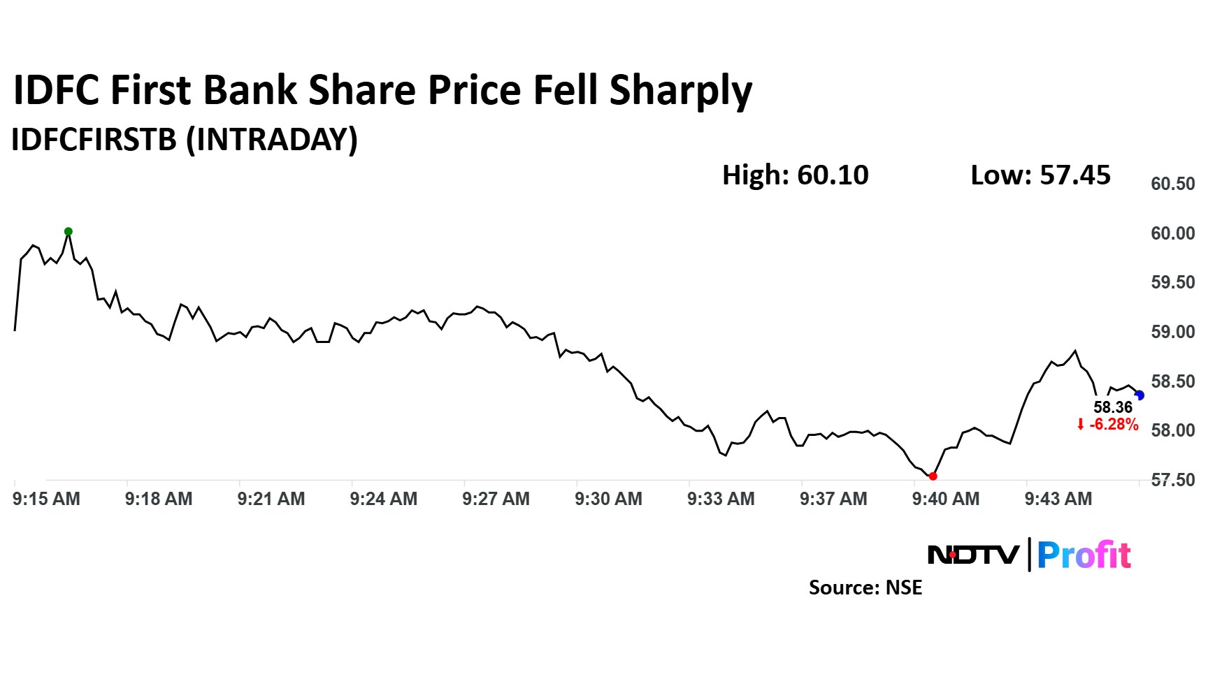 Shares of IDFC First Bank Ltd. dropped by 7.74% following the lender's disappointing quarterly results for the period ending December 2024. The private-sector lender reported a significant 53% decline in its profit year-on-year (YoY), posting a net profit of Rs 716 crore. The drop in profit was attributed to a substantial increase in provisions, particularly for its microfinance institutions segment.