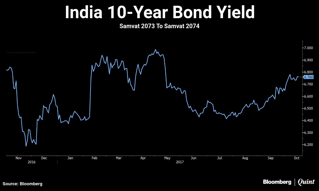 Indian sovereign bonds too saw the rally taper off towards the end of the period and were down 0.86 basis points in Samvat 2073.