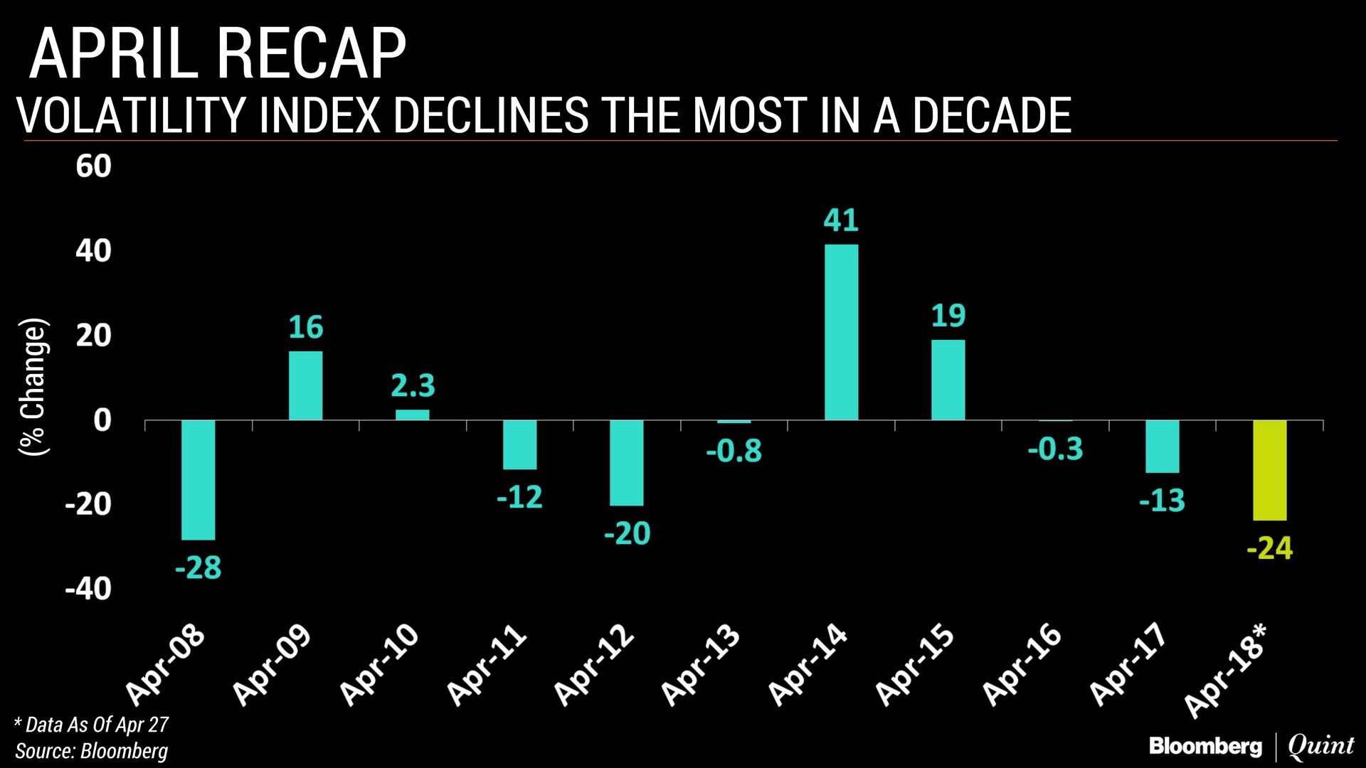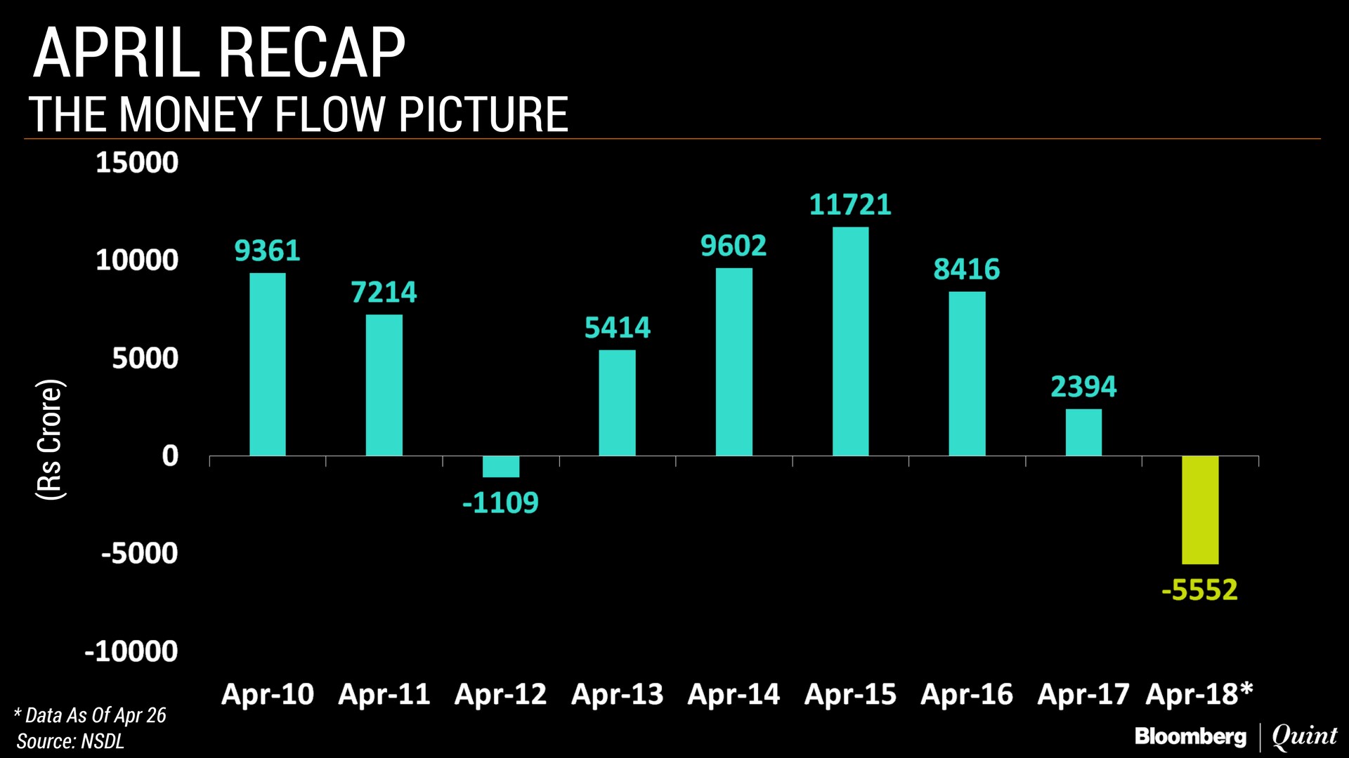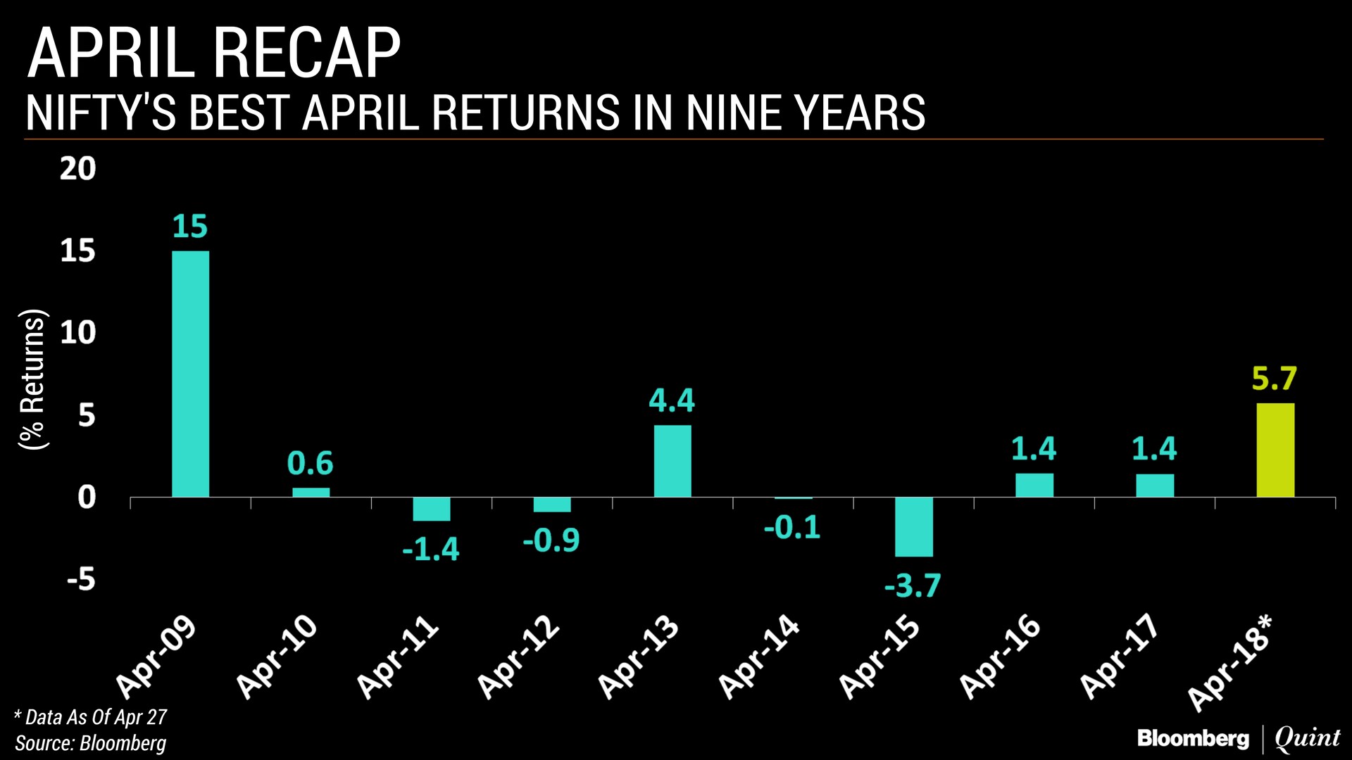 The Nifty 50 Index has so far gained nearly 6 percent, making it the best April in nine years. The benchmark came off its all-time high in January, falling in February and March after a global sell-off and India's decision to bring back tax on long-term equity gains.