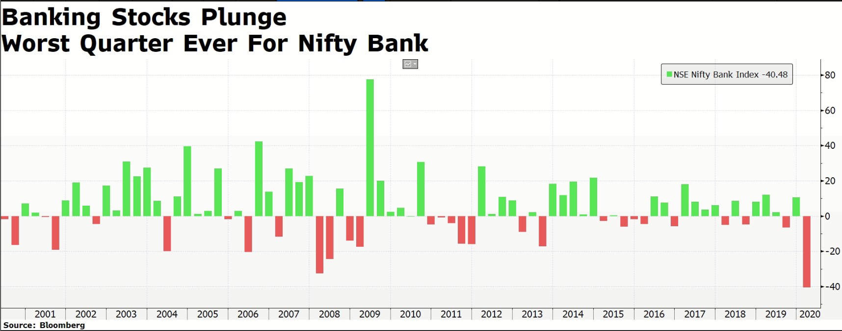 The Nifty 50 Index tumbled nearly 26 percent in 2019-20, the biggest slide in 11 fiscals. That came on the back of a 29 percent decline in the last three months of the financial year, the biggest quarterly selloff since 1992.