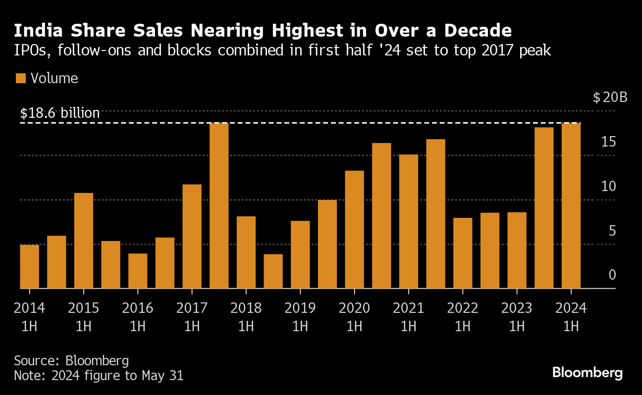 About $3.9 billion has been raised in India via IPOs so far this year, more than double the same period in 2023, and a tally that's higher than the combined amount raised in South Korea and Hong Kong, according to data compiled by Bloomberg.