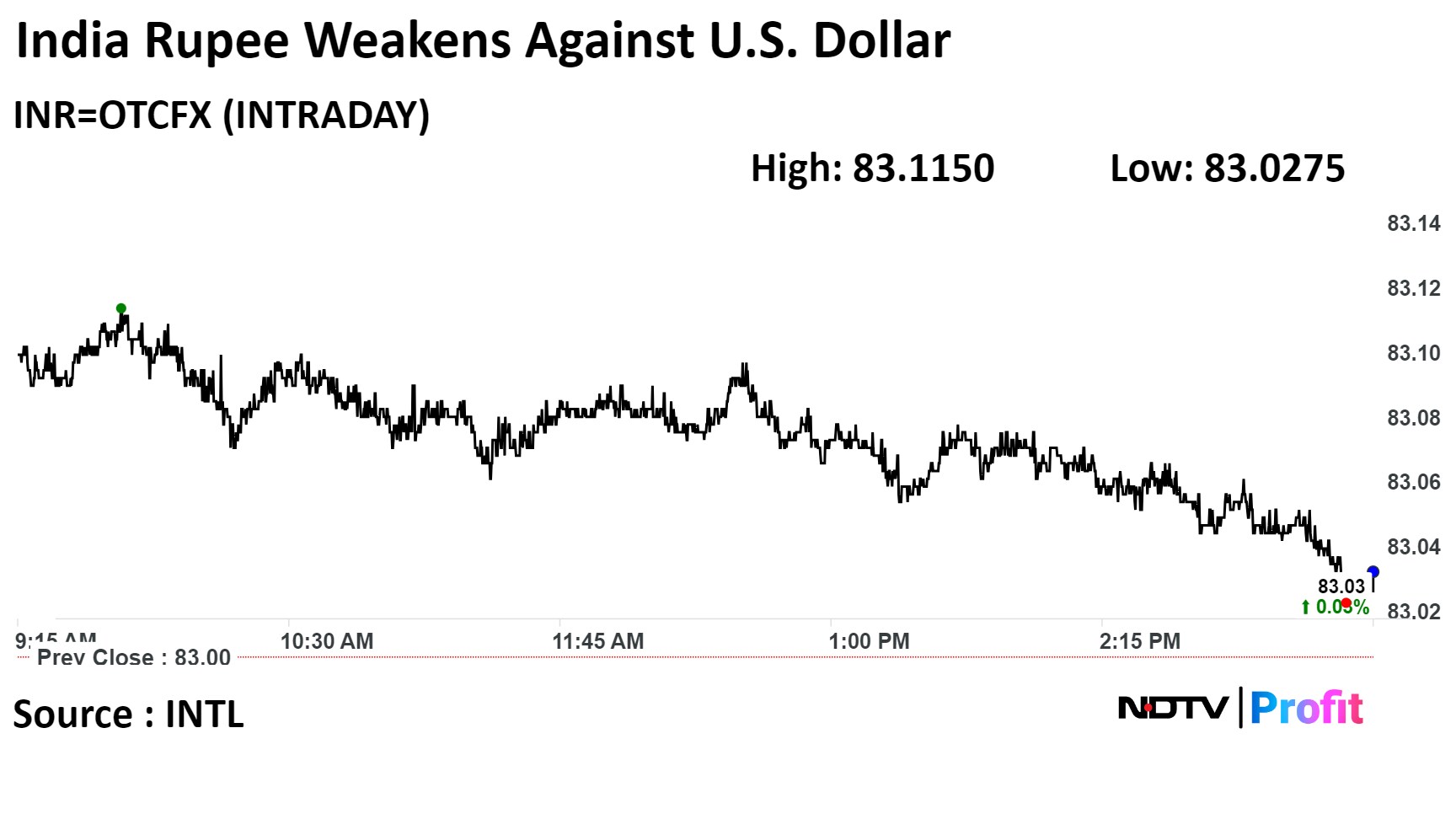 On Wednesday, the local currency depreciated 2 paise to settle at Rs 83.03 against the U.S. dollar, compared to Rs 83.01 at close on Tuesday. Intraday, the currency hit a low of 83.12 against the U.S. dollar.