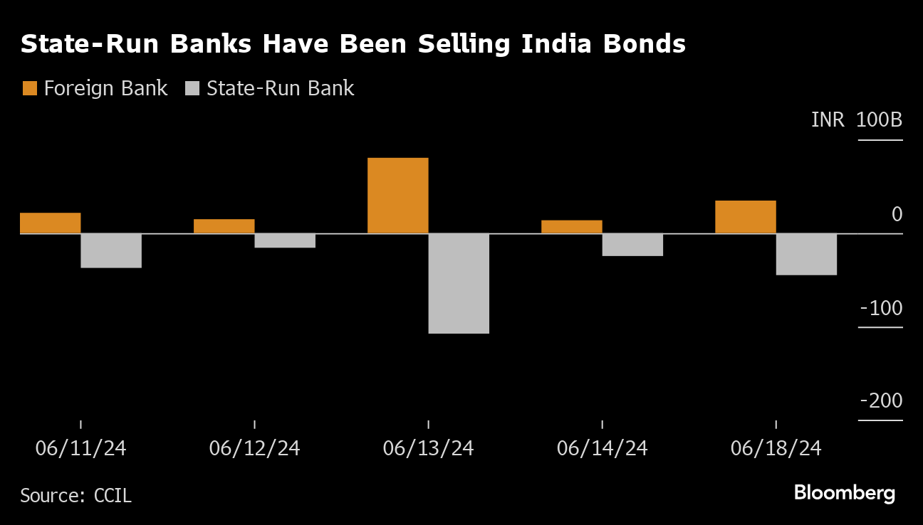 India's state-owned lenders have turned aggressive sellers of government bonds while foreign banks are piling in ahead of the global index inclusion.
