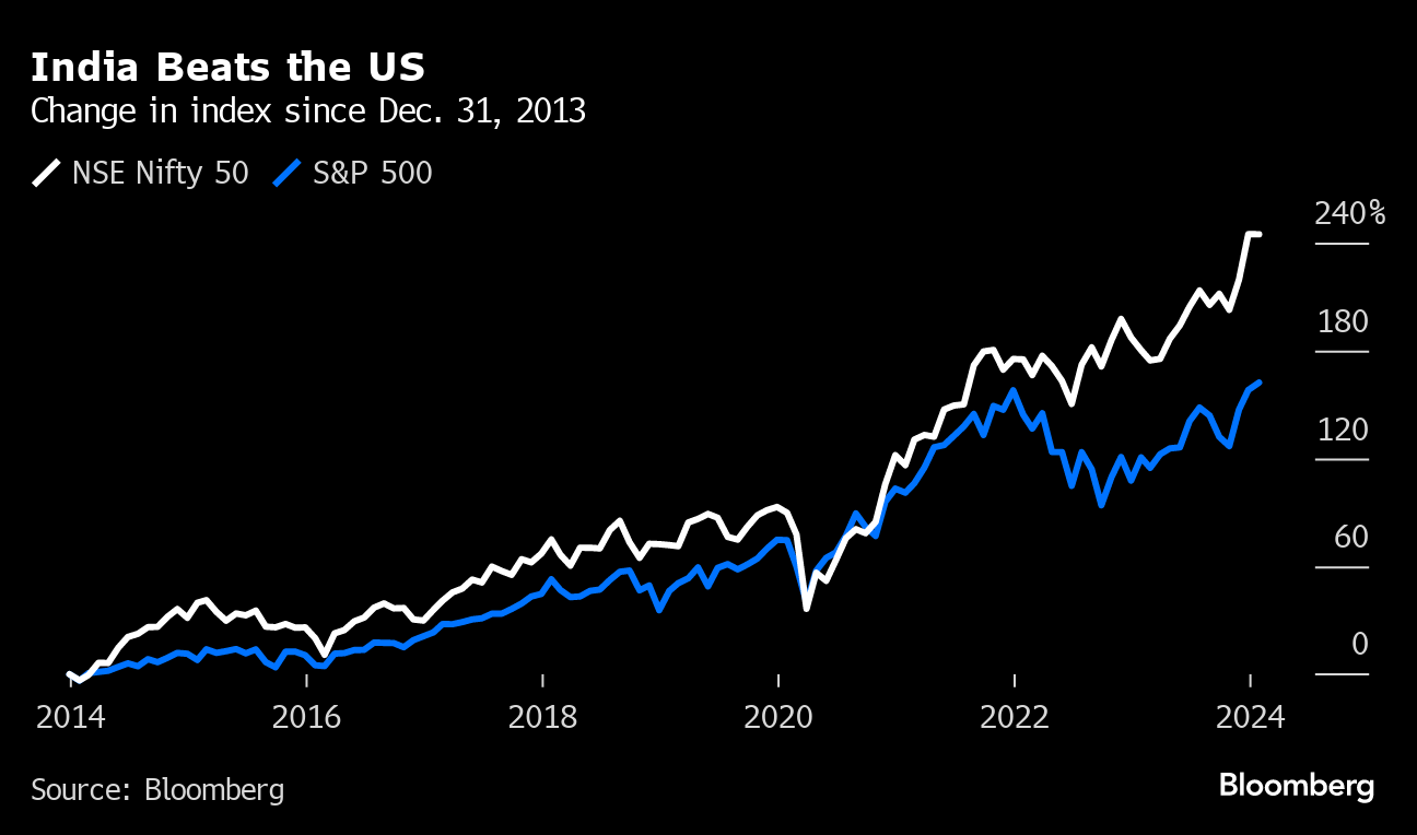 India's rapidly expanding middle class has long stashed its savings in real estate and gold. Households have only 7% in equities and mutual funds, compared with more than 40% in Brazil and China and 50% in the US. As a result, small investors have largely missed out on India's stock market boom, which may be fueling some fear-of-missing-out trading now. The country's stocks have been outperforming other major markets. Over the decade ended last year, the NSE Nifty 50 index of Indian stocks has offered a 14.8% average annual return, almost 3 percentage points better than the S&P 500.
