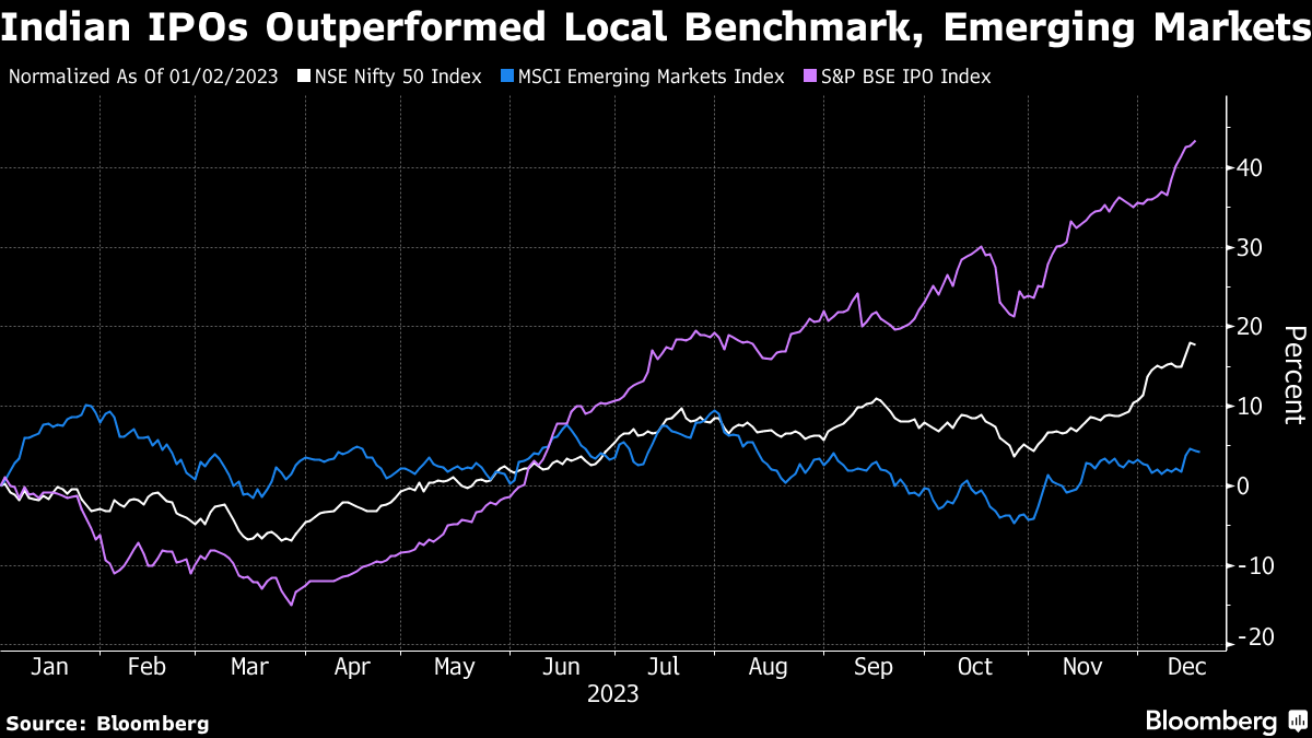 India offers “a much more constructive story for capital markets than the rest of Asia. It is as wide open as we have seen it for a while,” said Udhay Furtado, co-head of ECM, Asia Pacific at Citigroup Inc. “Bigger names could be potential candidates for 2024 listings.”