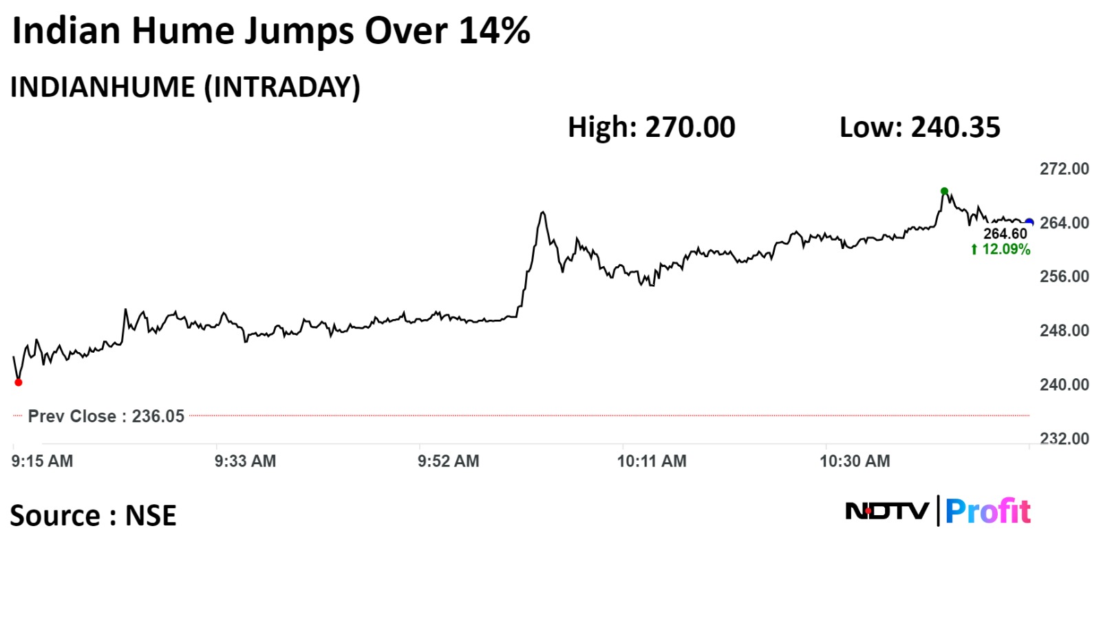 Shares of the company rose as much as 14.38% during the day on the NSE. It was trading 12.24% higher as compared to a 0.38% advance in the benchmark Nifty 50 at 10:48 a.m.